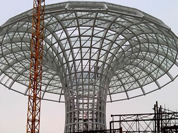 二、球形网架结构因其结构新颖,受力合理,自重轻、用钢量低等优点。如大型体育场馆球形兰州螺栓球网架、公共场馆球形网架、电厂兰州螺栓球网架、水泥工业球形网架、仓储物流球形网架、兰州干煤棚工业球形网架、兰州收费站兰州加油站球形网架、展览中心、影剧院、商场、航站楼、候车厅、工厂兰州车间、仓库、电视塔等球形螺栓球节点网架。国内球形网架结构主要分为:兰州焊接球节点网架及螺栓球节点网架两种。螺栓球节点网架其构件工厂内加工量较大,现场安装便捷,适用于现场工期紧,兰州施工条件、用电量受制约,网架形状复杂、兰州杆件定位困难的异形结构。螺栓球节点球形网架系统基本由兰州杆件、螺栓球、支撑支座等组成。按照节点形式可分为交叉兰州桁架体系、四角锥体系、三角锥体系等。支撑方式多为固定支座支撑。对于大面积、大跨度及有特殊受力或伸缩要求的网架结构可采用橡胶支座、滑移支座、球铰支座等支撑形式,以满足结构自身的受力稳定、均衡,便于内力释放等设计要求。